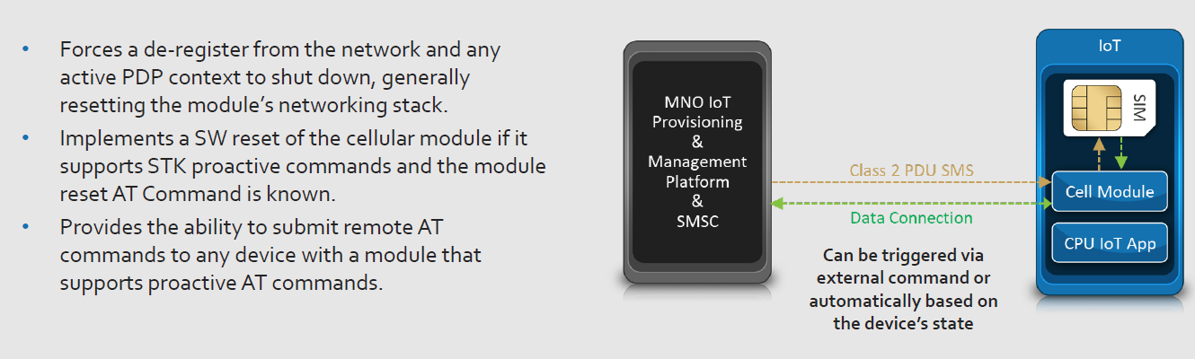 In addition, a device could be very hard to reach and requires a remote hard reset. SIMbae applets integrated with a cellular module that has been integrated into a HW switch in the device PCB can enable remote HW reset. Below is an example of how such and integration can enable remote resets.